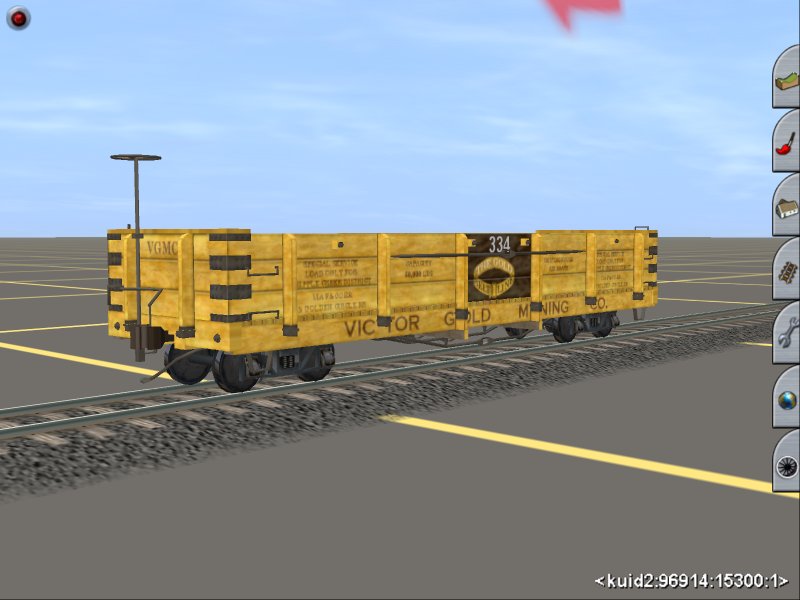 A model of Victor Gold Mining Co&s first class of gondolas, with auto running numbers. The cars were used on the Florence & Cripple Creek, and eventually owned by the F&CC. (IIRC) The prototypes were intended for coal service, but you can load anything in this one.