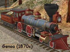 Locomotive No 12 (Genoa)Genoa was built in 1873 by Baldwin. Very similar to 'Reno', she would pull the express when 'Reno' was out of service due to an accident or maintenance. Otherwise, she pulled other passenger or mixed trains, and occasionally freight. Never converted to coal or oil, 'Genoa' has remained a wood burner her entire life. She was retired in 1908, and sold in 1938. She now resides at the California State Railroad Museum, restored to her 1902 appearance. Drivers: 56 3/4 in Created by Ben Neal (bdaneal); links take you to his site, Subpar Productions. Also requires V&T Common files and Cabin for Reno, Genoa Version: TRS 2004 - TC2 |