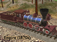 Locomotive No 13 (Empire)'Empire' was one of eight nearly identical 2-6-0's built by Baldwin Locomotive Works from 1869 through 1873 for the Virginia & Truckee Railroad. Built in 1873, she spent a long life as a freight engine on the V&T. In 1910, she was renumbered #15 due to the bad luck associated with her previous number. In 1924, she was sold to the Pacific Portland Cement Company, Gerlach, Nevada as #501. In 1938, Empire was presented to the Pacific Coast Chapter of the Railway and Locomotive Historical Society for preservation. She is now on display at the California State Railroad Museum, restored to her 'as built' appearance. Drivers: 48 in Three levels of detail; 15144 / 3855 / 913 polygons A matching tender is also available. This model is based on Ben Neal's (bdaneal) Inyo model; modified with permission. Version: TS2009 and later |
