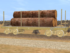 V & T 30' wooden flatcar (Central Pacific)Built for the Virginia & Truckee Railroad in 1872 by the Central Pacific Shops in Sacramento, CA. These cars were built to CP plans, as the CP shops had lost the original 24' Virginia & Truckee flat plans. Initially painted in yellow; by the 1890s, all cars were painted red. There is some discussion that the cars were initially painted a grey / slate color; a version is also provided for that possibility. Version: TRS 2019 and later |